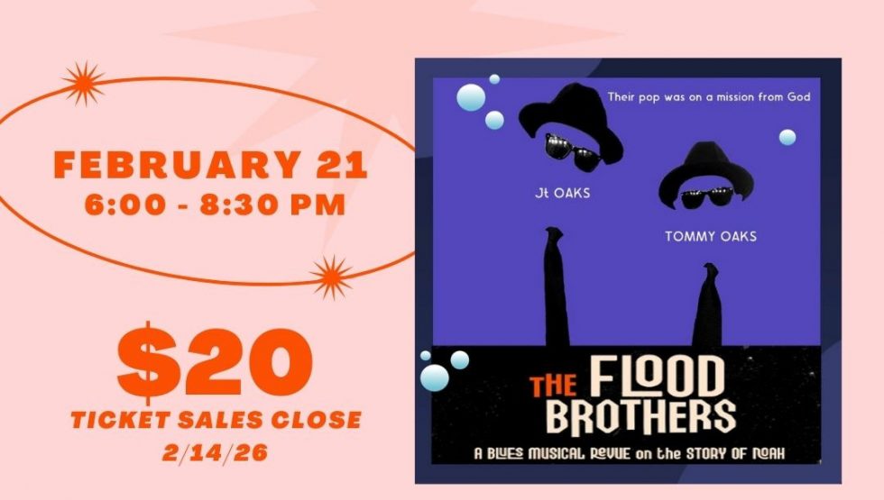 Join us for a delightful evening out with a dinner buffet and entertainment provided by Tommy Oaks’ production of “The Flood Brothers”. 𝗗𝗘𝗧𝗔𝗜𝗟𝗦: Tickets are $20 per plate. Ticket sales will close on February 14th at 11:50pm. Doors will open at 6:00 pm with buffet food service starting at 6:30 pm., followed by an engaging … Continue reading An Evening Out: Dinner & Entertainment by Tommy Oaks